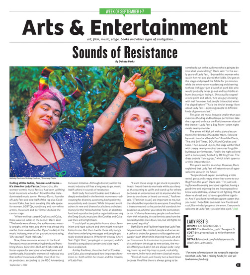 LADY FEST 9 WHEN: 7 p.m. Saturday, Sept. 3 WHERE: The Handlebar, 319 N. Tarragona St. COST: $10, proceeds go to Yellowhammer Fund* DETAILS: facebook.com/ladyfestpensacola, @lady_fest_pensacola